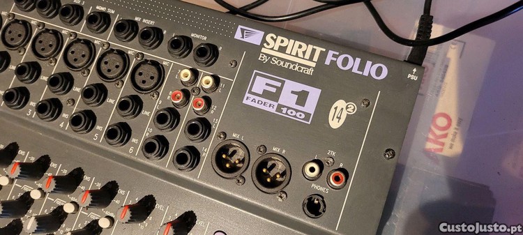 Vendo mesa de mistura Soundcraft Spirit Folio F1, como a apresentada na imagem, inclui as seguintes especificações e características principais: