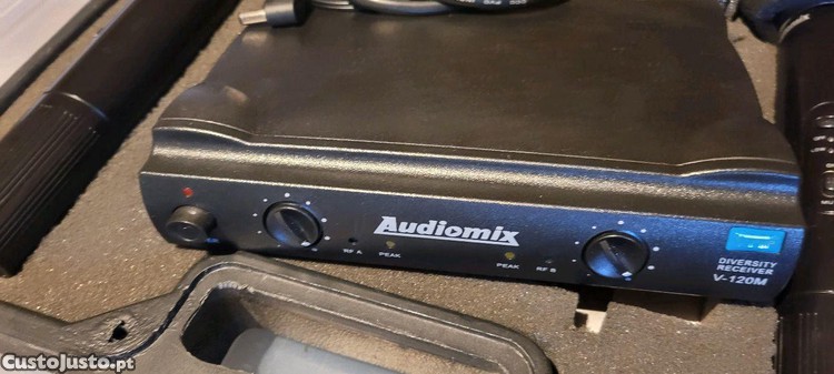 Vendo 2 microfones sem fios como novos da marca AUDIOMIX V-120M-Receptor 2 canais + 2 micros de mão VHF