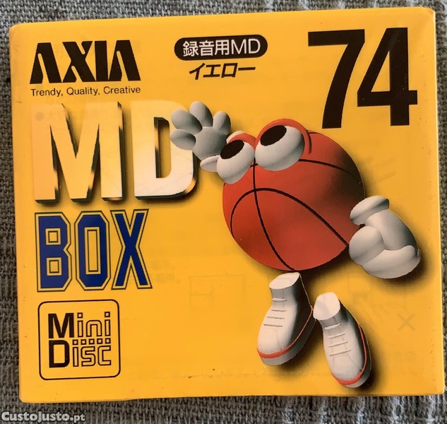 MiniDisc Axia MD de 74 minutos, na cor amarela.