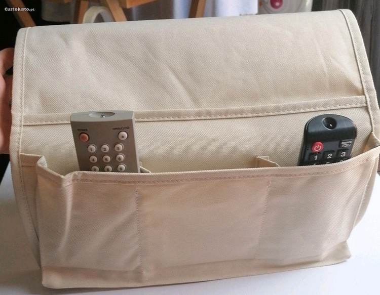 Preço: 10 €Suporte em tecido com compartimentos, para comandos, revistas e outros