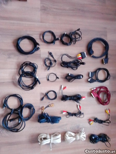 Tenho para dispensar vários cabos para Hi-Fi, imagem, consolas e telefones.