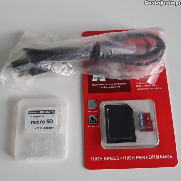Preço: 12 €Cabo USB Dados Carrega + SD2VITA 6.0 p/ PSVita + microSD 64GB Novos