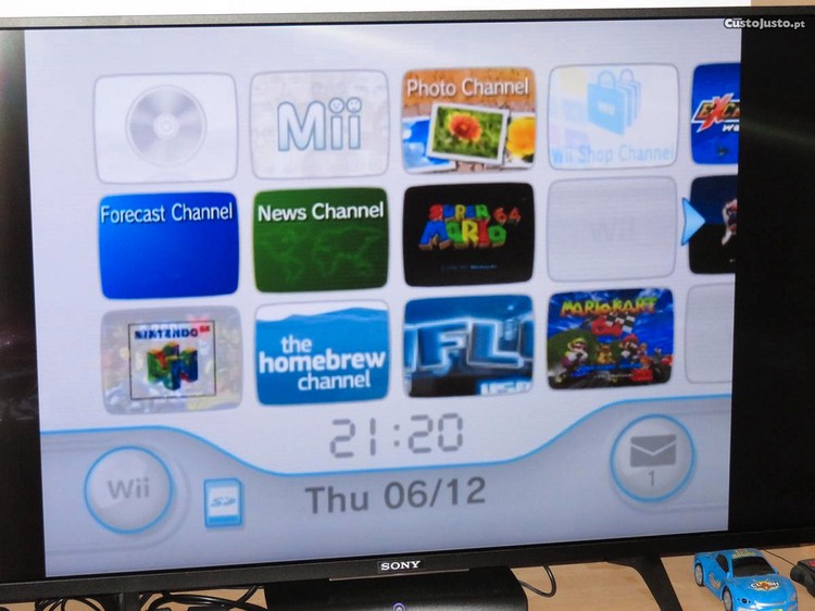 A consola tem um SD card de 2GB com o homebrew channel instalado, permite correr emuladores, wiiflow, e muitos outros.