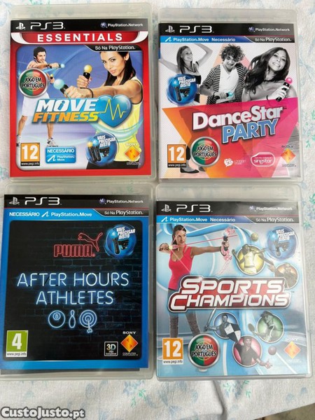 Jogos PS3 move: Sports Champions, Fitness, DanceStar Party, Puma After Hours Athletes.