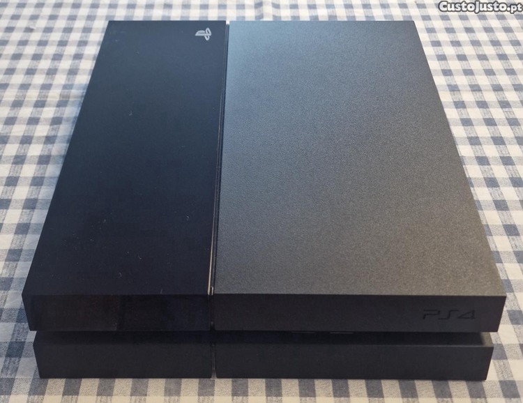 PlayStation 4 com disco de 1Tb, 2 comandos DualShock 4 a funcionar e 12 jogos.