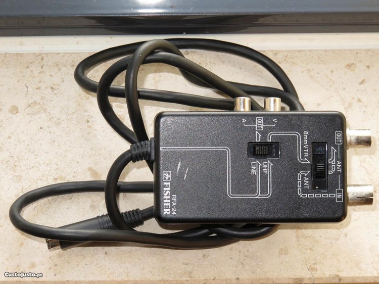 Estranho acessório que recebe RF e supostamente converte para vídeo Composto, o cabo que parece uma ligação de Mega Drive é provavelmente para ligar á electricidade ou a outro equipamento.