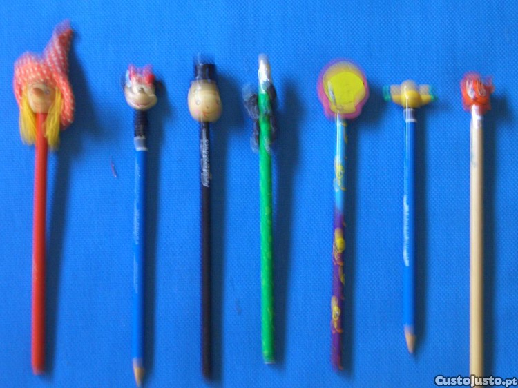 Preço: 10 €Conjunto 7 Lápis novos com bonequinhos diferentes