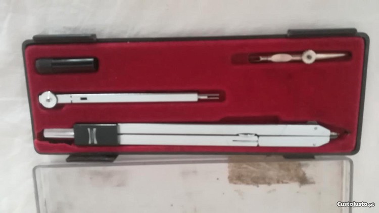 Contem compasso ,adapatador e tira-linhas e caixa com minas
