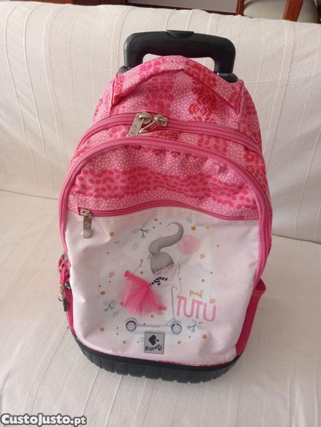 Tem dois bolsos principais para o transporte de livros, cadernos e pastas. O segundo bolso é acolchoado e projetado para carregar dispositivos delicados.