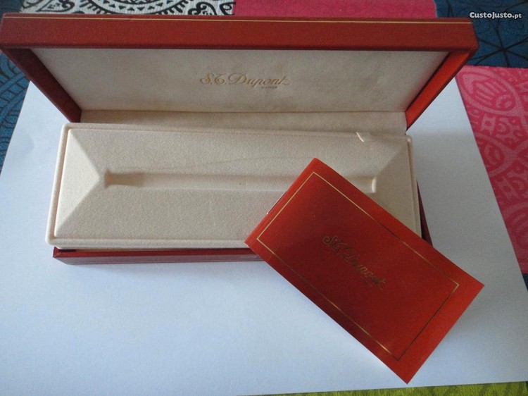 Tenho para venda esta caixa para caneta ou esferográfica da Dupont , com o livro da mesma , Comprimento 19,50cm Largura 7,50 Altura 3,50cm , entregue em mão , pelo correio mais portes , qualquer duvida disponha .