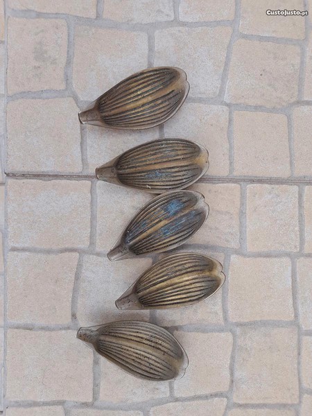 5 magníficos utensílios com aplicação de cinzeiros, totalmente em.latao, com grande valor .