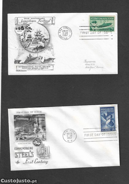 Dois envelopes do 1 Dia. U.S.A 1957. Norfolk 10 de Junho e Nova York 22 de Maio. Posso vender separado.