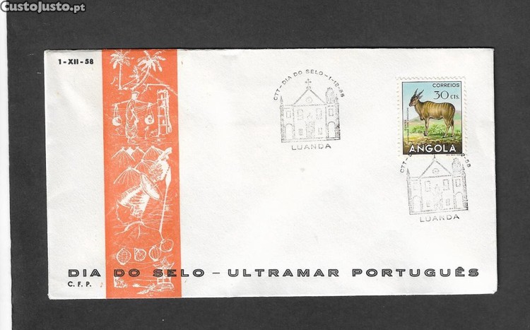 Preço: 1 €Envelope dia do selo. Angola 1958