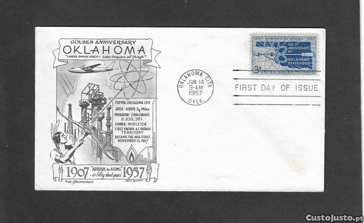 Envelope do 1 Dia . E.U.América - Oklahoma, 14 de Junho 1957.