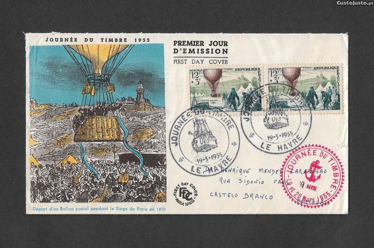 Envelope do 1 Dia. França 1955, Le Havre Dia do Selo 19 de Março de 1955.