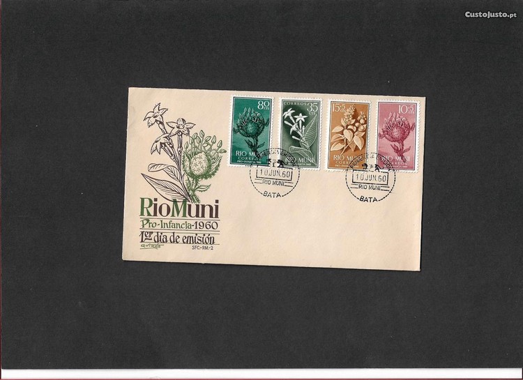 Preço: 2 €Envelope do 1º dia. Rio Muni 1960