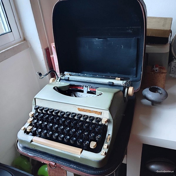 Máquina de escrever vintage, com estojo em pele, em bom estado para colecionadores. Transporte a cargo do comprador. Entrega em local público. Negociável.
