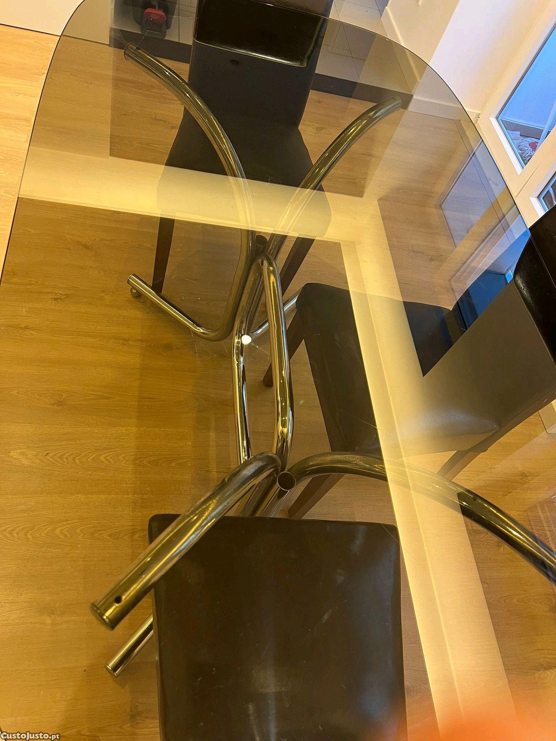mesa de vidro com três cadeiras, usado, vidro impecável, algumas marcas de uso mas poucas , zona de Benfica, inegociavel