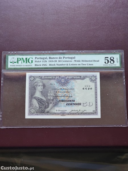 Preço: 275 €Nota Portugal 50 Centavos certificada PMG58
