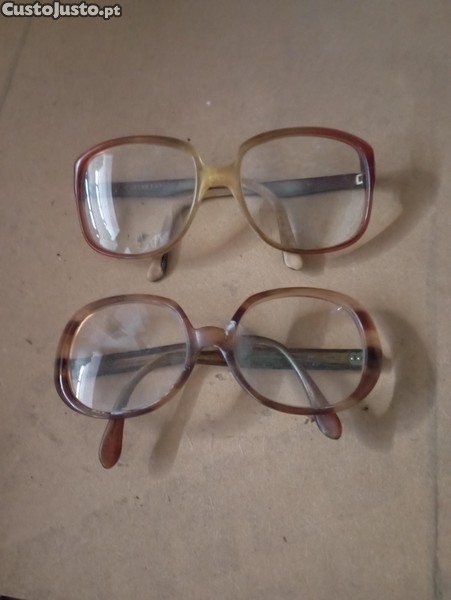 Óculos com armações em massa, muito resistentes, usados em bom estado. Podem levar lentes graduadas.