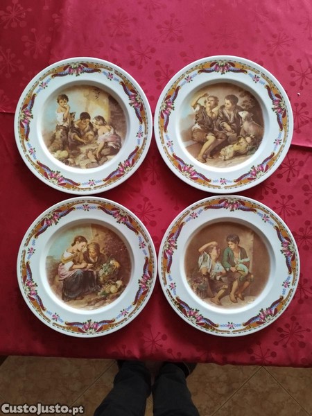 Vendo quatro pratos decorativos em porcelana. Peças antigas de coleção.