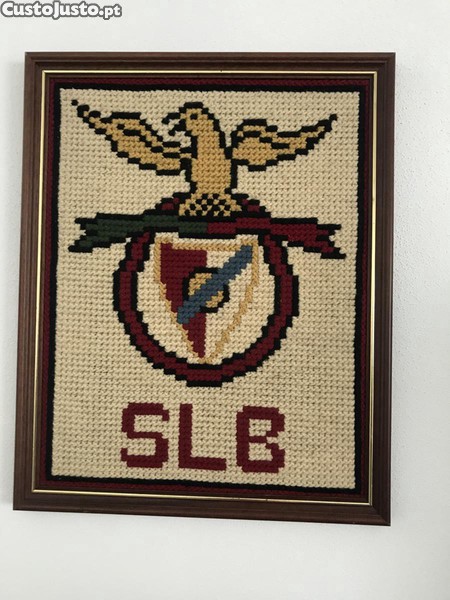Preço: 25 €Quadro/moldura com imagem da águia do Benfica em lã ponto de cruz