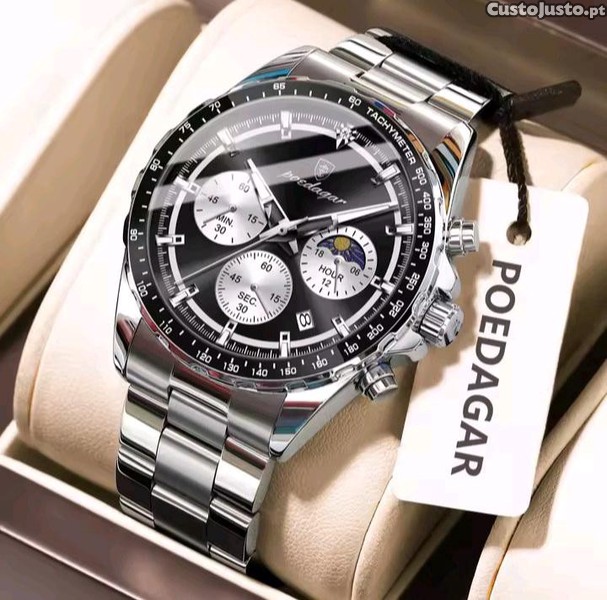 Preço: 40 €Relógio novo de marca original Poedagar,á prova de água e cronógrafo com calendário de aço inoxidável