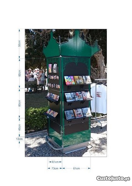 O quiosque assenta numa base de atrelado de bicicleta para transporte de crianças com estrutura em fibra (para melhor resistir a humidade/chuva). O topo e as prateleiras são feitas em placa de polipropileno alveolar.O uso do atrelado é mais recomendado para interior ou espaços de exterior que não estejam sujeitos a muito vento, dado a altura da estrutura e leveza em termos de pesoUma das mais-valias deste atrelado é que pode ser facilmente guardado e utilizado, ao contrário de uma grande maioria de produtos semelhantes. Tanto pode ser facilmente transportado num carro convencional como, em caso de trajectos mais pequenos, pode facilmente ser puxado por uma bicicleta.