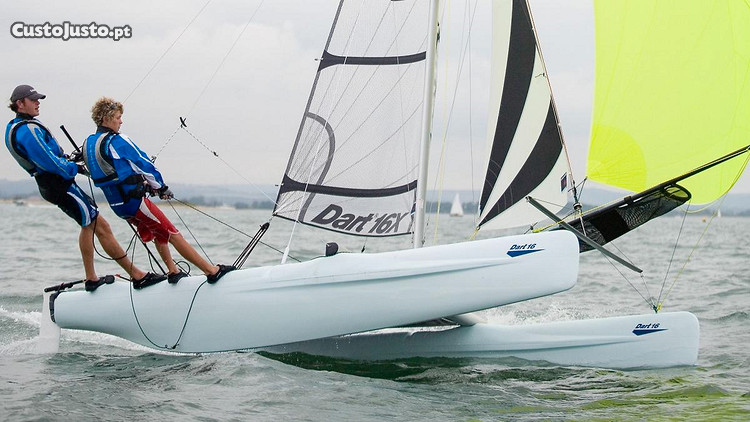 Catamaran Dart 16, embarcação construida em polipropileno rotomoldado (plástico), material ''indestrutível'' não precisa de manutenção pronto a navegar em muito bom estado com vela grande e jib de enrolar em dacron, trapézio, capa, carrinho de praia