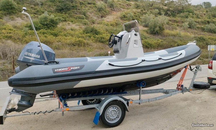 Hydrosport RIB474 + depósito no casco 90 litros + motor Suzuki, Honda ou Tohatsu 60hp + atrelado com matrícula fica em 22 900 euros com IVA.