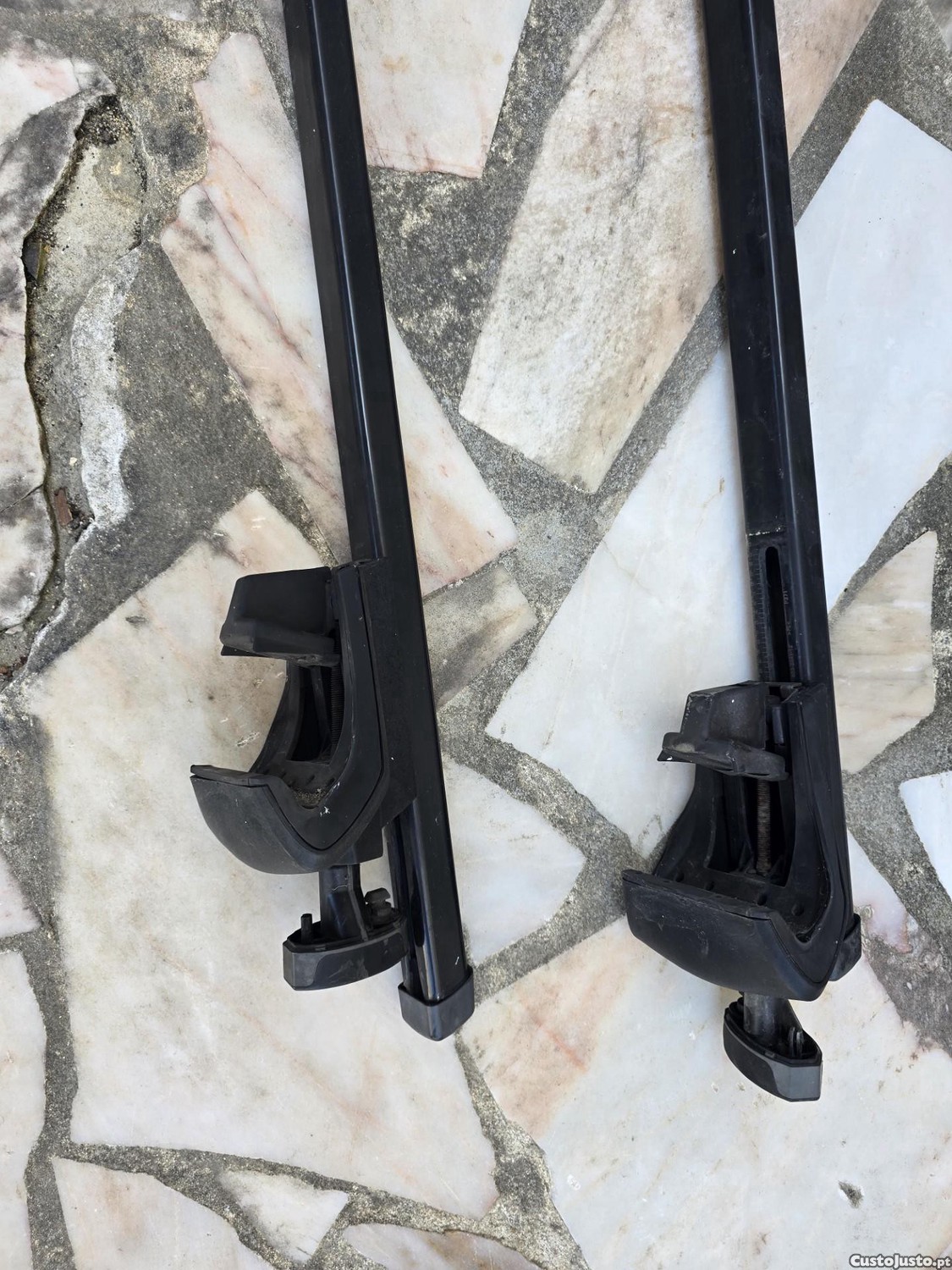 vendo barras Thule e mala Norauto de tejadilho para carro. Estiveram instaladas numa Ford Grand C-Max, mas é compatível com varias marcas. Tanto as barras como a mala têm sinais de uso, mas em boas condições, É possivel vender em separado