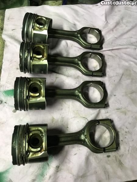 Conjunto de 4 bielas + pistões ainda montados, em muito bom estado, retirado de Peugeot 307 1.6 HDI 110 cv (9HZ). São entregues devidamente embalados e emassados. Motivo da venda: o motor onde este item se encontrava, acabou por revelar um problema interno no bloco, o que levou à sua substituição por outro motor.