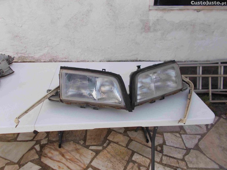 Faróis Depo, sem rachadelas com o espelhado e o vidro em excelente estado (inclui os frisos por baixo em bom estado), a 80EUR o par.