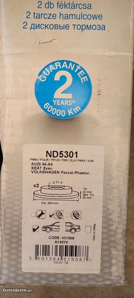 Preço: 50 €Jogo discos travão N5301Audi/Seat/Vw