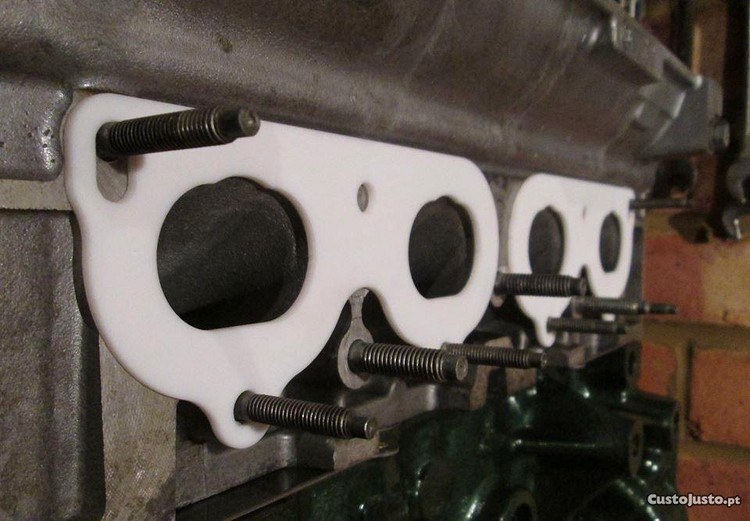 Isola e funciona como barreira térmica, reduzindo transferência de calor para o colector de admissão, baixando as temperaturas de admissão.