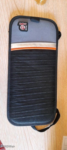 Porta cds pra automóveis.Capacidade para 12 cds, universal coloca se com elásticos incluídos nas palas de sol dos automóveis, prático funcional e sempre à mão.
