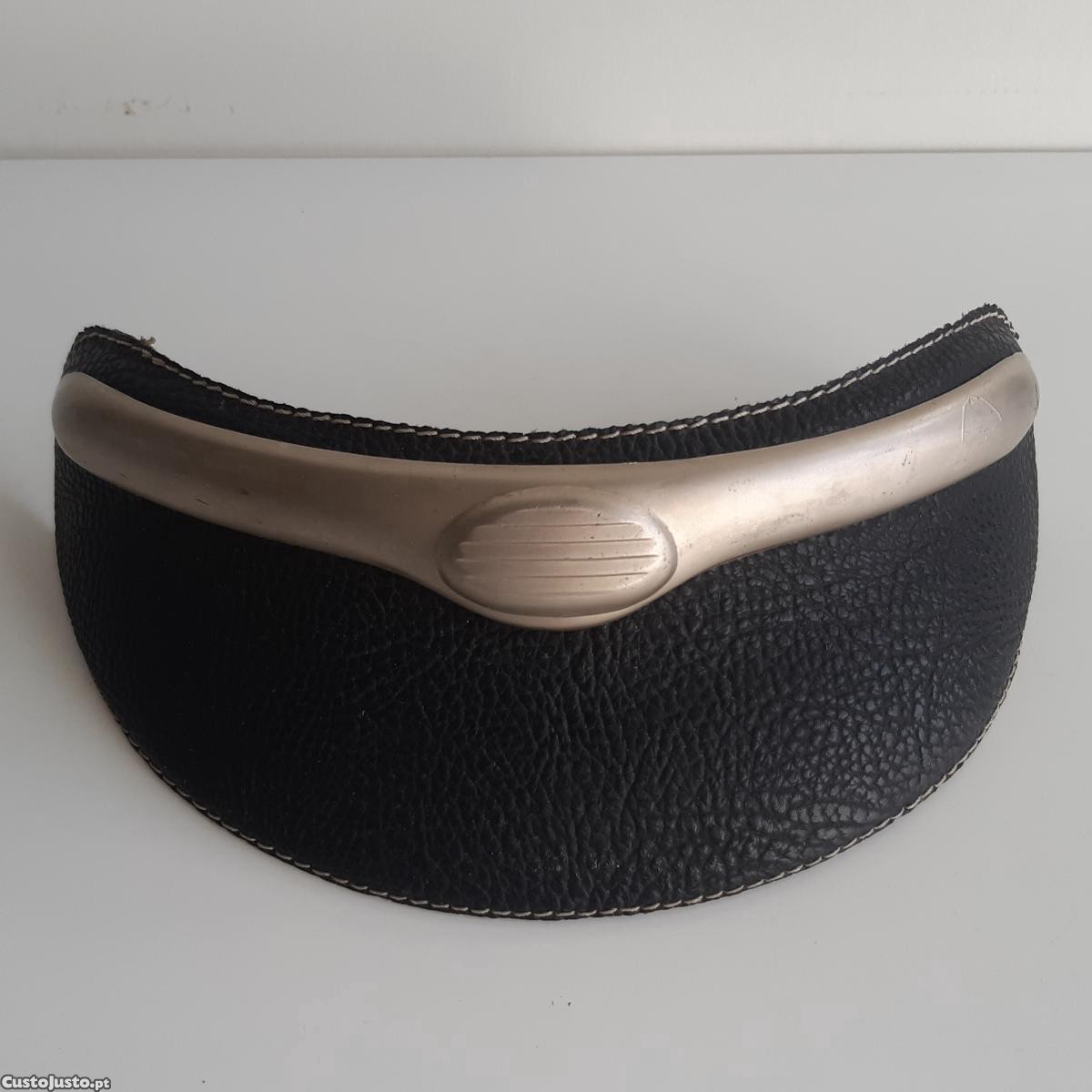 Pala revestida a pele sintética preta com reforço em plástico cinzento.