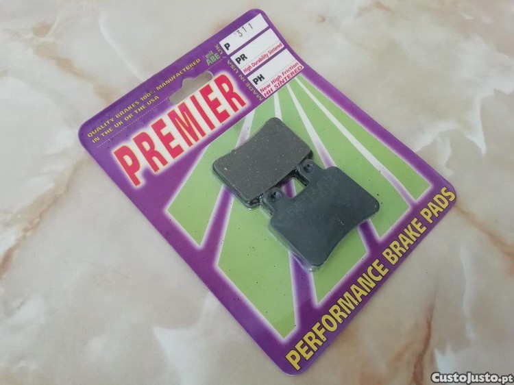 Preço: 15 €Pastilhas travão Premier P311 Derbi Senda 50, Yamaha DTR 50, DTX 50, XT 125, Peugeot Elyseo 125, etc.