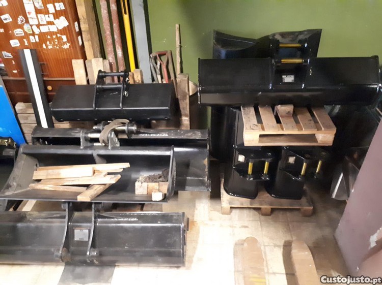 Baldes de escavação, limpeza, raiados, rippers, garfos porta paletes, proteção de farolins traseiros, chaves codificadas, acessórios, etc.