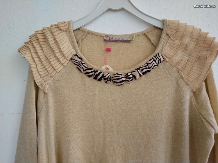 Preço: 7 €Camisola creme com botões e cinto tigresa - Tamanho L / XL - Nova!