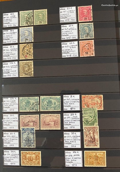 1898 - 1905 D. Carlos I Novas Cores e 1898 Cent. Desc. Cam Mar. Índia