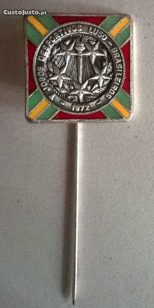 Vendo alfinete de lapela de participante nos V Jogos Desportivos Luso-Brasileiros de 1972.
