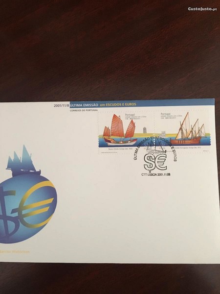 2001. Barcos Históricos. Af.2832-3. EUR4,00 (ultima emissão Escudos e Euros) sobrescrito comemorativo.