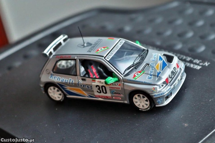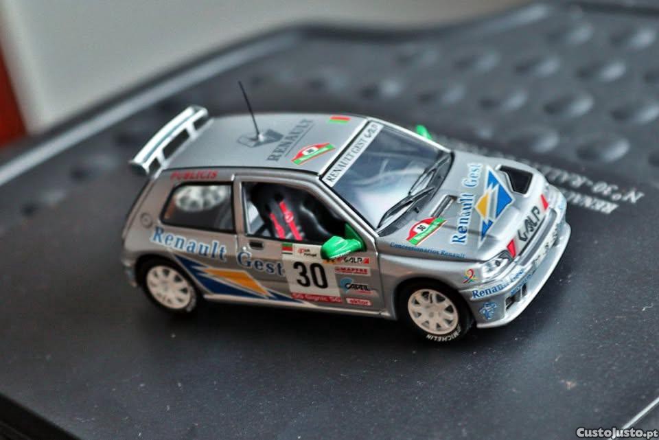 Modelo estático à escala 1/43 do Renault Clio Maxi da equipa Renault Gest GALP, José Carlos Macedo/Miguel Borges, edição TAP Rallye de Portugal 1995, da Universal Hobbies. Raríssimo, como novo!