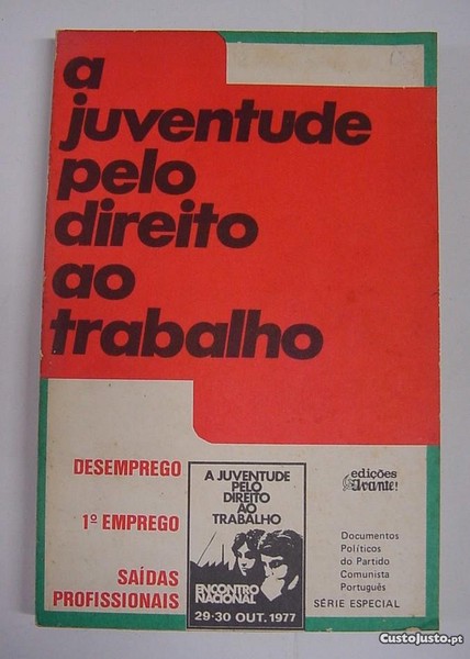 Vendo livro "A Juventude pelo Direito ao Trabalho", com os documentos em análise e discussão e intervenções no Encontro Nacional da UJC/UEC de 29 e 30 de Outubro de 1977.