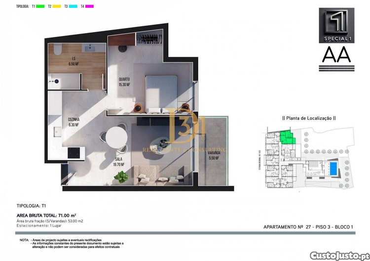 Preço: 380 000 €The special 1 - apt t1 aa - piso 3