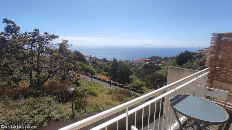 Moradia em banda T3 com 4 pisos, o quarto em suite é no sotao com wc privado e com a area da moradia. Tem 4 wc, um em cada piso. Garagem para 3 carros. Bem conservada tem soalho nas escadas quartos e sala, portas e armarios em madeira maciça. Vista permanente serra e mar.