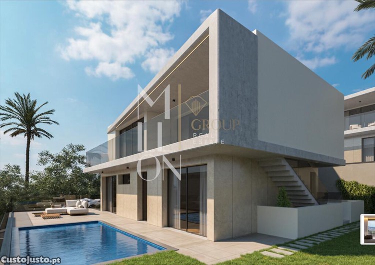 Moradia E, de tipologia T3, distribuída por 3 pisos, inserida num Lote com 360,50 m2, com excelente qualidade construtiva e acabamentos de luxo, com uma área bruta com 244,70 m2, piscina e solário e uma vista panorâmica espectacular sobre a cidade, o mar e o nascer do sol.