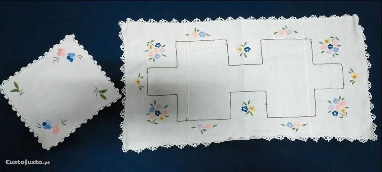 Preço: 8 €3 Naperons + 3 Bases para copos (bordados à mão)