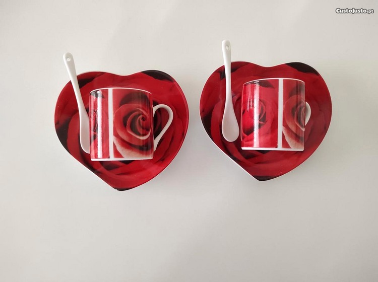 Conjunto 2 Chávenas + 2 Pires temáticas do dia dos namorados.